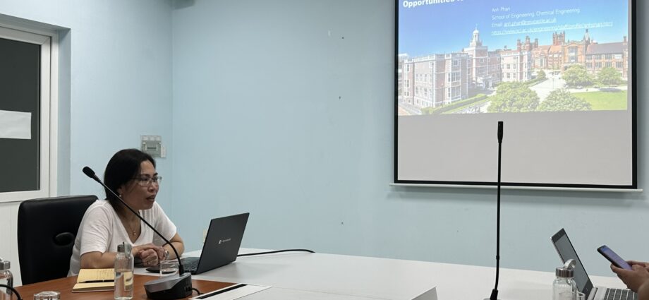 Giáo sư Phan Anh, Trưởng khoa Kỹ thuật hoá học tuần hoàn, Trường Kỹ thuật, Đại học Newcastle, đã giới thiệu về trường, các trao đổi về lĩnh vực chuyên môn hướng vật liệu, kỹ thuật cho phát triển tuần hoàn…