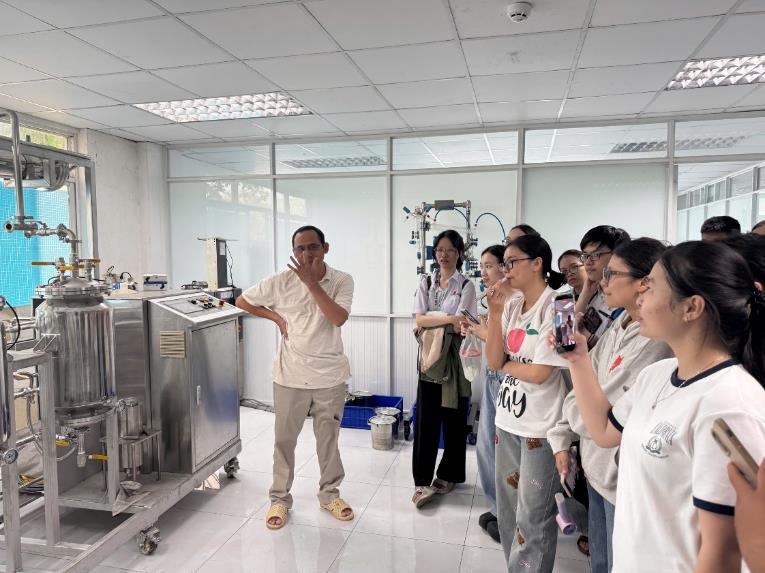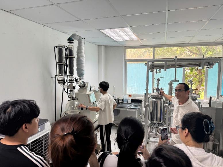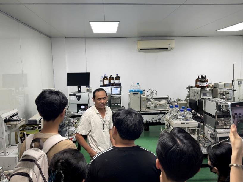 Trong suốt buổi tham quan, các nhà khoa học trẻ tại Viện đã trực tiếp hướng dẫn, chia sẻ về quy trình vận hành thiết bị và những dự án nghiên cứu tiêu biểu đang được triển khai. Sự tò mò, ham học hỏi của các bạn sinh viên đã tạo nên một bầu không khí thảo luận sôi nổi, từ những thắc mắc về kỹ thuật chiết tách đến cơ hội phát triển các sản phẩm hóa dược từ thiên nhiên.